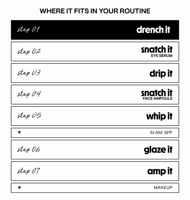 A nourishing priming milk essence that drenches skin with cooling hydration that helps soothe, plump, brighten & tone.